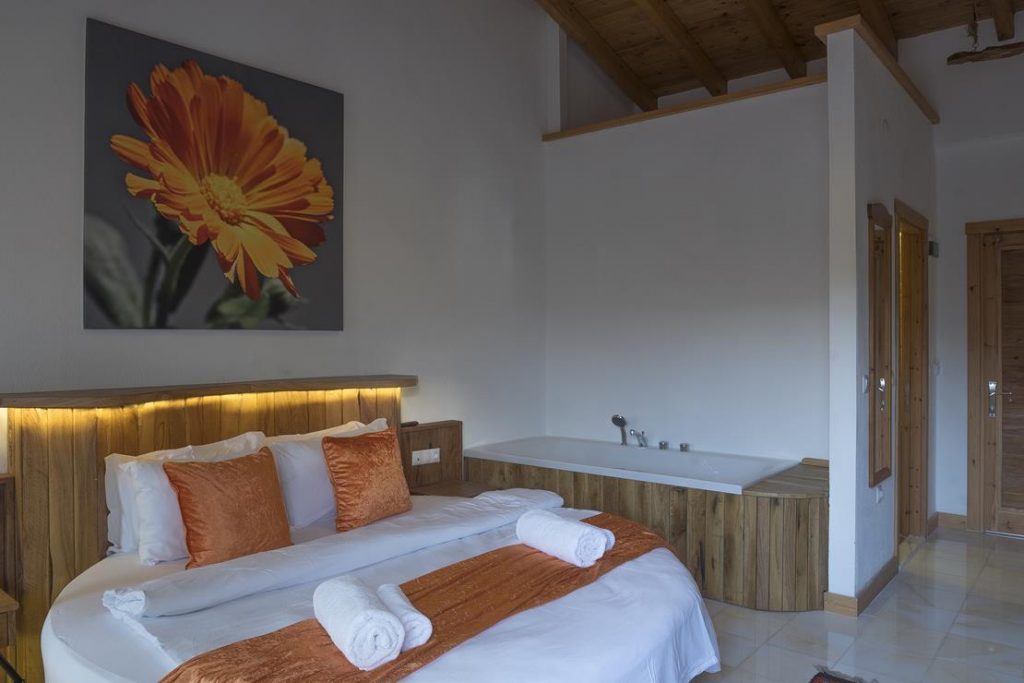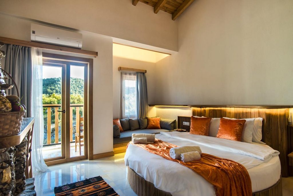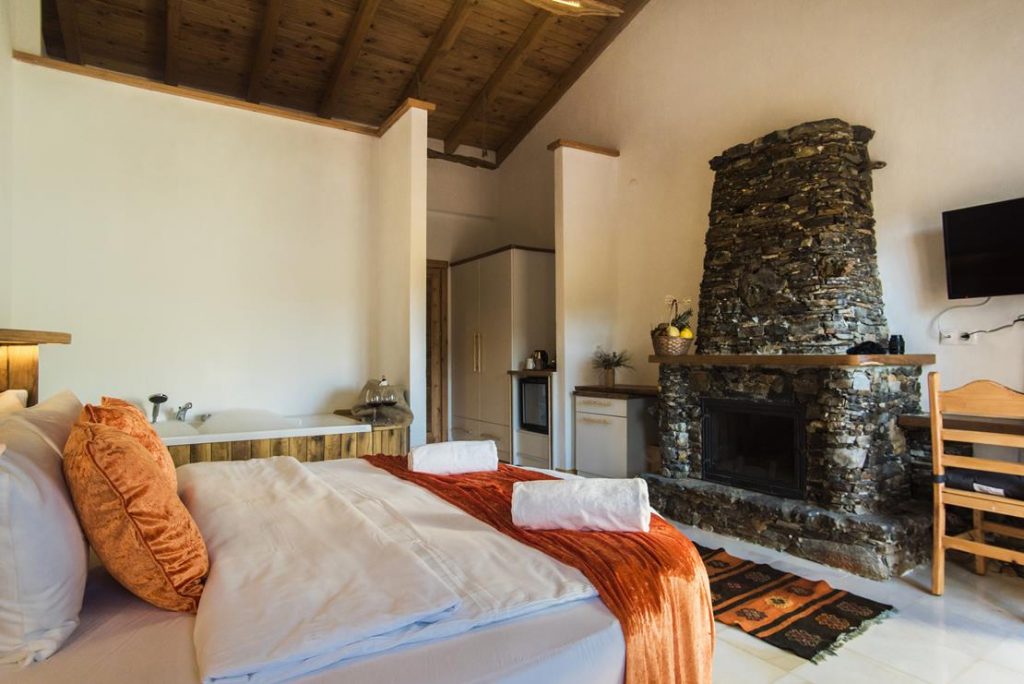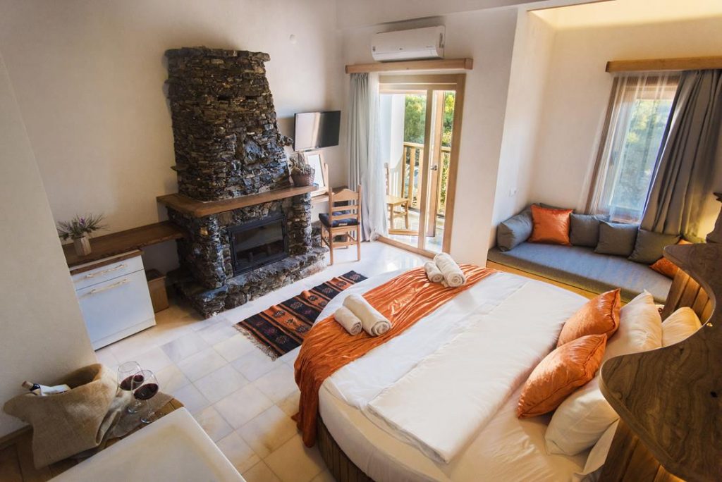 4 mevsim konaklama yapabileceğiniz oda; merkezi ısıtma sisteminin yanında taştan yapılmış şöminenizi keyifle kullanacağınız imkanı sağlamaktadır.